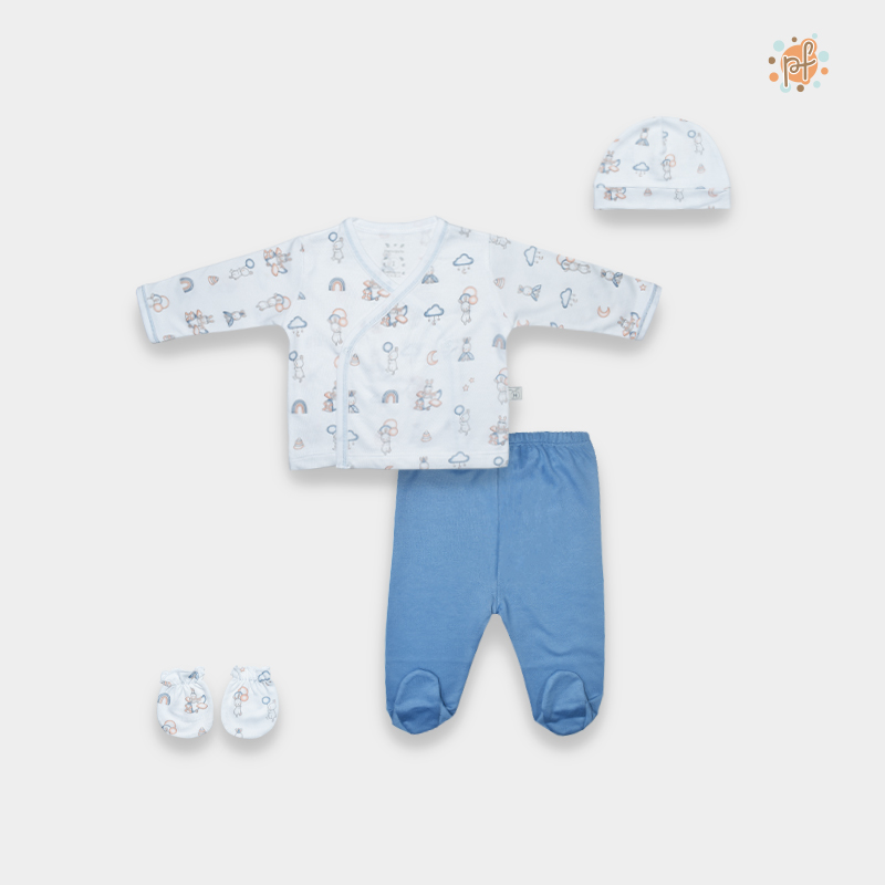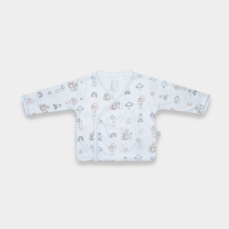 El Ajuar Aventura en el Cielo para bebé es una opción tierna y encantadora para los primeros días de tu pequeño. Su combinación en blanco y azul, junto con el delicado diseño de conejitos, transmite calma y dulzura, creando un look adorable que enamora desde el primer momento.