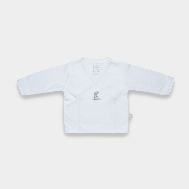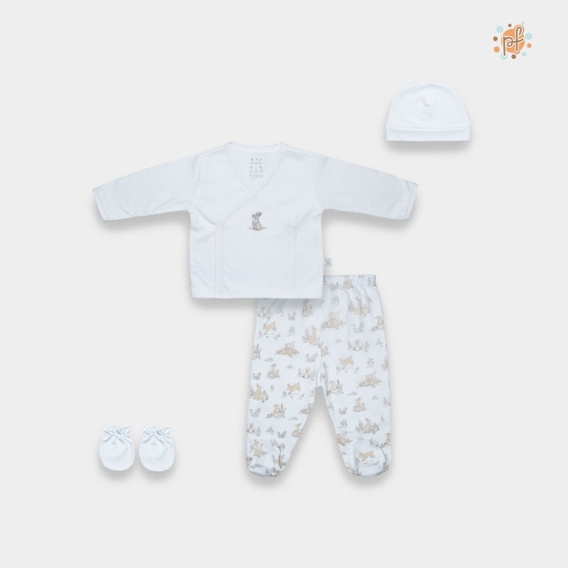 El Ajuar Conejitos para bebé es una opción dulce y delicada para los primeros días de tu pequeño. Su diseño en color blanco con estampado de conejitos transmite ternura y calma, creando un look limpio, adorable y fácil de combinar.