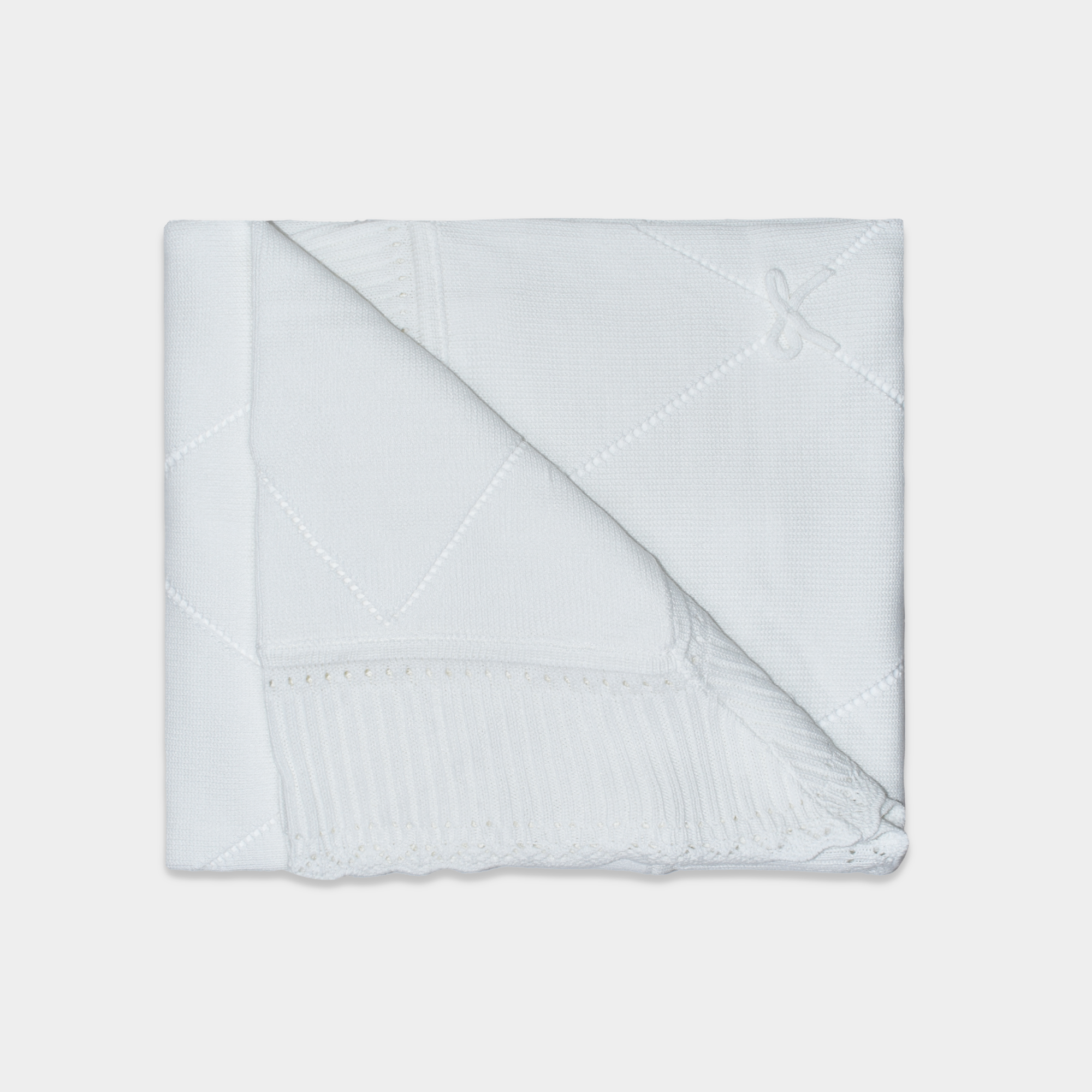 La colcha de hilo para bebé con delicado detalle de lazito es una prenda elegante y funcional, ideal para acompañar a tu bebé desde sus primeros días. Su diseño clásico la convierte en una opción perfecta para quienes buscan una manta elegante para bebé que combine suavidad, comodidad y estilo.
