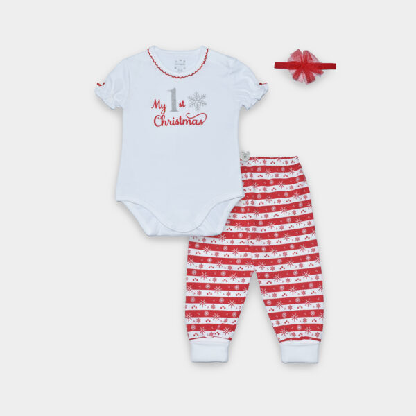 Conjunto de navidad para beba,100% algodón con temática navideña, ideal para tu bebé esta navidad. Las fotos de tu bebé vestido con ropa navideña pueden ser memorias que atesorarás por años. Es una manera linda de celebrar la primera Navidad de tu hija y compartir esa alegría con familiares y amigos a través de fotos o reuniones.