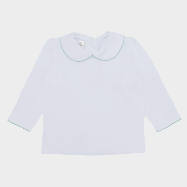 👕 Polo de manga larga con cuello bebé: una pieza de algodón suave al tacto, ideal para cuidar la delicada piel de tu niña. El cuello bebé añade un aire clásico, tierno y refinado que complementa perfectamente el jumper.