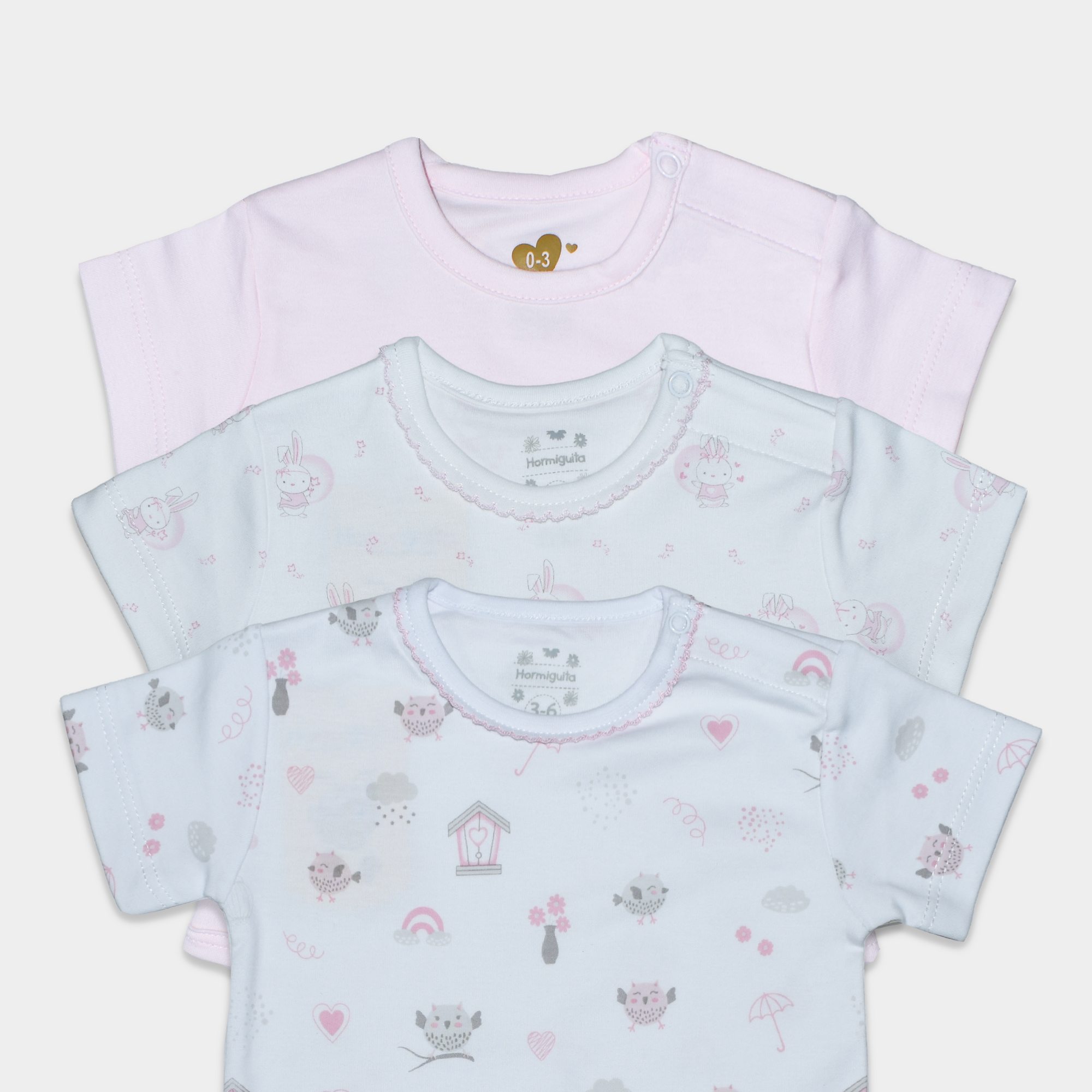 – Incluye 3 bodys de manga corta.