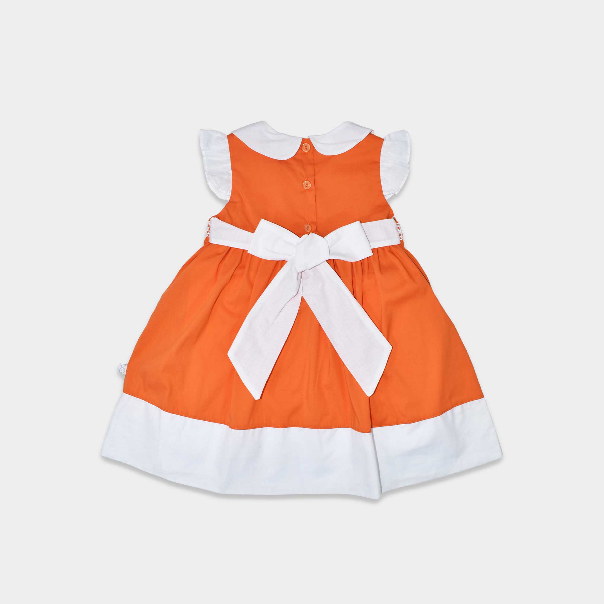 El vestido de bebé Abigail es una opción hermosa y práctica para el día a día de tu pequeña. Está confeccionado en algodón suave y ligero, ideal para cuidar la piel delicada del bebé, mientras su color naranja le da un toque alegre, moderno y lleno de vida.