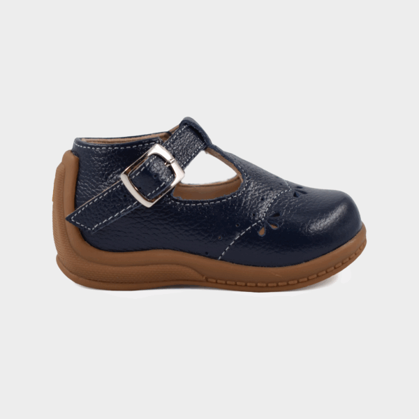 El Zapato Pibe Azul Mily combina ternura y funcionalidad. Con suela flexible, punta ancha y plantilla de cuero badana, respeta el desarrollo natural del pie de tu niña, brindando comodidad y seguridad desde sus primeros pasos.